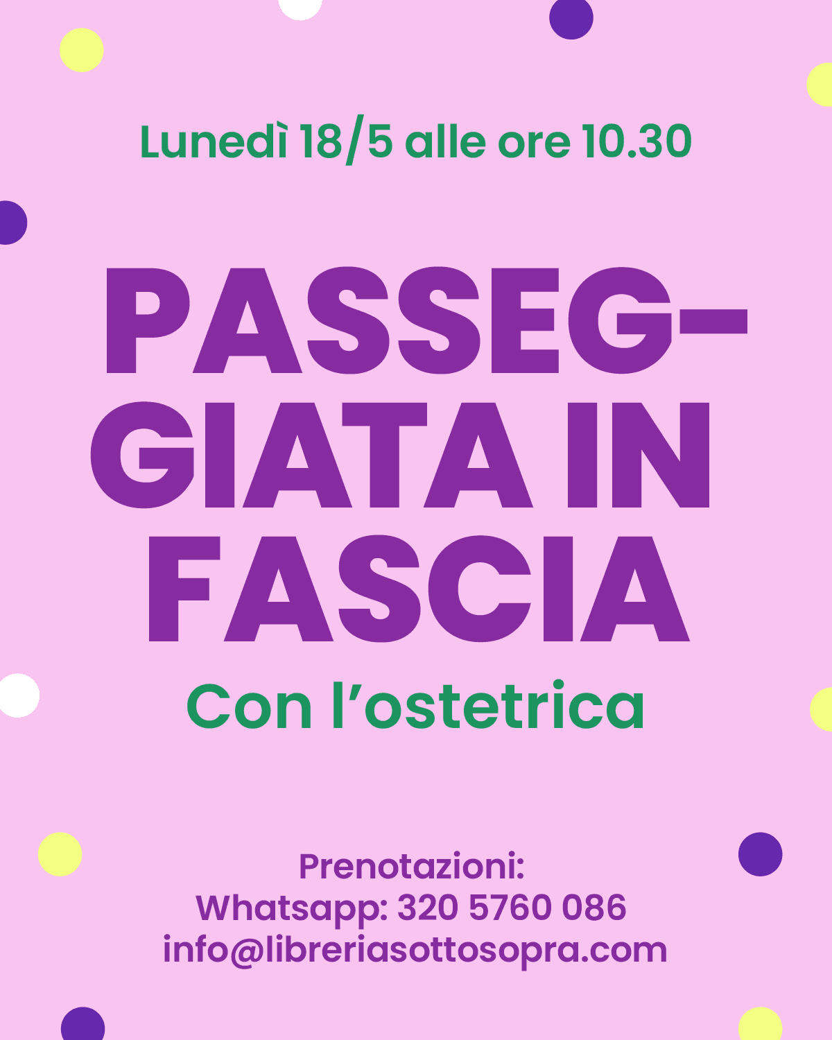 con un’ostetrica specializzata partiremo insieme dalla libreria e, in fascia, passeggeremo immersi nel verde cittadino.