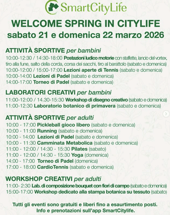 Con l’arrivo della primavera torna Welcome Spring, l’evento organizzato da SmartCityLife per inaugurare la stagione di attività nel CityLife Park.